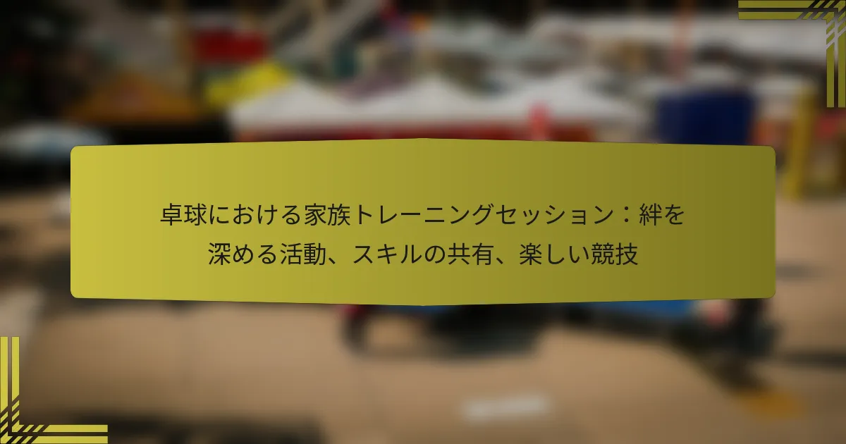 卓球における家族トレーニングセッションは、スキルを向上させながら家族の絆を育むために設計された構造化された活動です。これらのセッションは、スキル開発、友好的な競争、楽しさを組み合わせており、家族がスポーツを通じてつながる素晴らしい方法となります。