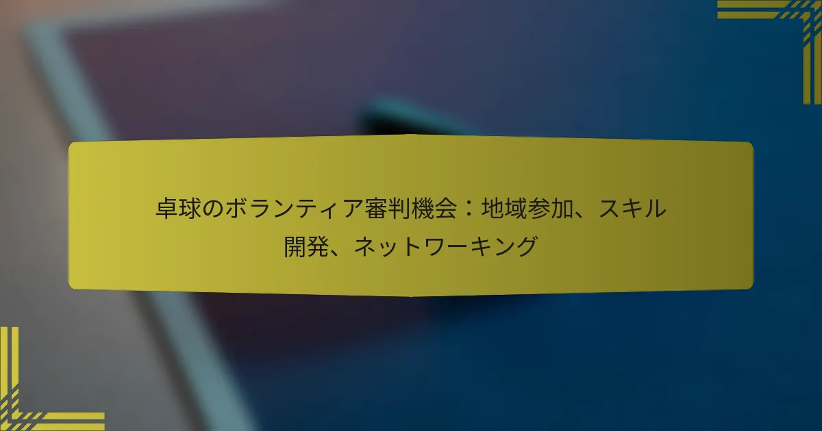 テーブルテニスのボランティア審判に参加することは、コミュニティに貢献しながらスキルを向上させる充実した方法です。地域のクラブや団体を通じて機会があり、他の愛好者とネットワークを築き、貴重な経験を得ることができます。